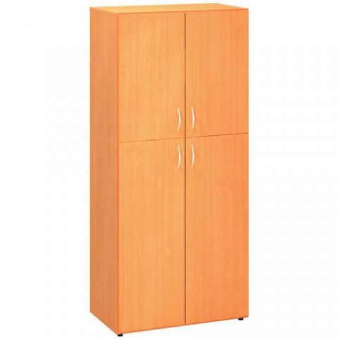 Uzavřené skříňky v pěti barevných provedeních. Skříň se skládá ze dvou samostatně otevíracích oddílů. Spodní oddíl obsahuje tři police, vrchní oddíl obsahuje jednu polici. Korpusy jsou vyrobeny z laminované dřevotřísky tloušťky 18 mm s ABS hranou 1 mm, dvířka mají ABS hranu 2 mm. Záda skříní tvoří laminovaná dřevotříska o tloušťce 8 mm. Dřevěné police jsou upevněny kovovými trny, které zamezují jejich nežádoucímu vysunutí. Kancelářské skříně jsou vysoce odolné proti mechanickému poškození a disponují zvýšenou odolností vůči nadměrné vlhkosti. Pomocí aretačních šroubů umístěných ve dně korpusu lze vyrovnat nerovnosti podlahy a zajistit tak vyšší stabilitu skříňky. Skříně splňují normy ISO 9001, ISO 14001, ČSN 18001, Ekologicky šetrný výrobek.Vysoké široké skříně Alfa 500, 178 x 80 x 47 cm, s dvířky