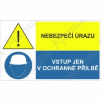 Výstražná tabulka - Nebezpečí úrazu vstup jen v ochranné přilbě