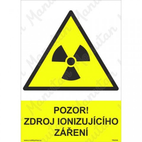 Bezpečnostní značení tabulkou, značkou nebo samolepkou "Pozor zdroj ionizujícího záření" tiskneme na vysoce kvalitním materiálu, barvami s vysokou odolností proti otěru a UV záření. Tím zajišťujeme splnění požadavků Nařízení vlády č. 375/2017 Sb., ČSN ISO 3864-1, ČSN ISO 3864-2, ČSN ISO 3864-3, ČSN ISO 3864-4.Výstražné tabulky - Pozor zdroj ionizujícího záření