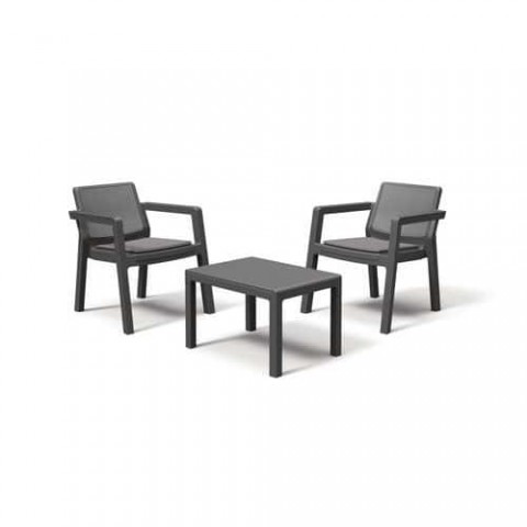 Venkovní sedací sestava pro relax na zahradě, terase nebo balkóně. Sada obsahuje dvě křesílka s podsedáky a konferenční stolek. Odolná konstrukce s jednoduchou údržbou, odolná vůči UV záření. Jednoduchá a rychlá montáž bez použití nářadí. Rozměry křesla 68 x 64 x 75 cm Rozměry stolku 65 x 47 x 42 cmZahradní set Emily Balcony