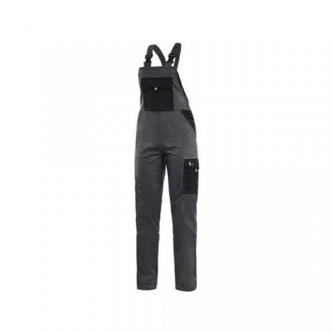 Dámské montérkové kalhoty s náprsenkou, z lehkého materiálu, náprsní kapsa s klopou, přední klínové kapsy, boční kapsa s klopou, kapsa na skládací/svinovací metr, zadní jednoduchá kapsa, šle vzadu na gumu. Díky odlehčené gramáži vhodné pro práci neje Velikost: 36-58 Svrchní materiál: 65 % polyester 35 % bavlnaZahradníky CXS PHOENIX HEKATE, dámské, šedo-černé