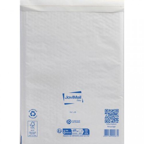 Bílá kraftová obálka Jovimail s bublinkovou fólií a nízkou hmotností. Ideální pro zasílání křehkých předmětů. Hladká fólie pro snadné vkládání dokumentů a dalších předmětů. Hladký papírový podklad pro snadný popis obálky. Obálka se samolepicí páskou pro uzavření.Zásilkové obálky z bublinkové fólie, 100 ks