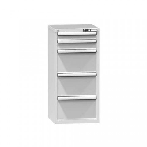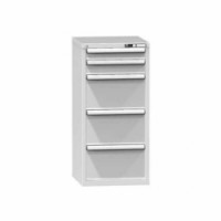 Zásuvková skříň je opatřená mechanismem centrálního zamykání a blokace zásuvek. Zásuvky jsou základním skladovacím prvkem, a proto splňují vysoké požadavky na pevnost a stabilitu. Korpusy zásuvkových skříní tvoří svařenec jednotlivých konstrukčních dílů z kvalitních ocelových plechů. Vnitřní konstrukce korpusů je opatřena perforací po 25 mm. Tuto perforaci využíváme k uchycení vodicích lišt zásuvek, jejich výškovému uspořádání a nakonfigurování požadované zásuvkové sestavy. Přestavování vodicích lišt nebo háčků polic probíhá jednoduše a velice rychle bez použití nástrojů.Zásuvkové skříně ZA3, 578 x 600 x 1215 mm