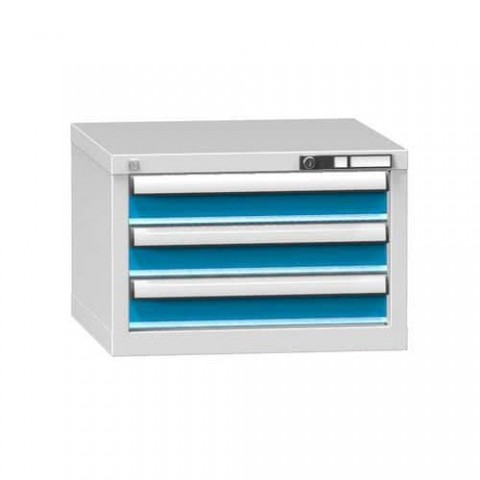 Zásuvková skříň je opatřená mechanismem centrálního zamykání a blokace zásuvek. Zásuvky jsou základním skladovacím prvkem, a proto splňují vysoké požadavky na pevnost a stabilitu. Korpusy zásuvkových skříní tvoří svařenec jednotlivých konstrukčních dílů z kvalitních ocelových plechů. Vnitřní konstrukce korpusů je opatřena perforací po 25 mm. Tuto perforaci využíváme k uchycení vodicích lišt zásuvek, jejich výškovému uspořádání a nakonfigurování požadované zásuvkové sestavy. Přestavování vodicích lišt nebo háčků polic probíhá jednoduše a velice rychle bez použití nástrojů.Zásuvkové skříně ZA3, 578 x 600 x 390 mm