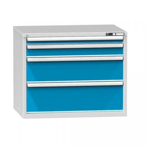 Zásuvková skříň je opatřená mechanismem centrálního zamykání a blokace zásuvek. Zásuvky jsou základním skladovacím prvkem, a proto splňují vysoké požadavky na pevnost a stabilitu. Korpusy zásuvkových skříní tvoří svařenec jednotlivých konstrukčních dílů z kvalitních ocelových plechů. Vnitřní konstrukce korpusů je opatřena perforací po 25 mm. Tuto perforaci využíváme k uchycení vodicích lišt zásuvek, jejich výškovému uspořádání a nakonfigurování požadované zásuvkové sestavy. Přestavování vodicích lišt nebo háčků polic probíhá jednoduše a velice rychle bez použití nástrojů.Zásuvkové skříně ZG2, 1037 x 753 x 840 mm