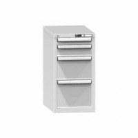 Zásuvková skříň je opatřená mechanismem centrálního zamykání a blokace zásuvek. Zásuvky jsou základním skladovacím prvkem, a proto splňují vysoké požadavky na pevnost a stabilitu. Korpusy zásuvkových skříní tvoří svařenec jednotlivých konstrukčních dílů z kvalitních ocelových plechů. Vnitřní konstrukce korpusů je opatřena perforací po 25 mm. Tuto perforaci využíváme k uchycení vodicích lišt zásuvek, jejich výškovému uspořádání a nakonfigurování požadované zásuvkové sestavy. Přestavování vodicích lišt nebo háčků polic probíhá jednoduše a velice rychle bez použití nástrojů.Zásuvkové skříně ZH4, 442 x 753 x 840 mm