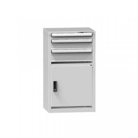 Zásuvková skříň je opatřená mechanismem centrálního zamykání a blokace zásuvek. Zásuvky jsou základním skladovacím prvkem, a proto splňují vysoké požadavky na pevnost a stabilitu. Korpusy zásuvkových skříní tvoří svařenec jednotlivých konstrukčních dílů z kvalitních ocelových plechů. Vnitřní konstrukce korpusů je opatřena perforací po 25 mm. Tuto perforaci využíváme k uchycení vodicích lišt zásuvek, jejich výškovému uspořádání a nakonfigurování požadované zásuvkové sestavy. Přestavování vodicích lišt nebo háčků polic probíhá jednoduše a velice rychle bez použití nástrojů.Zásuvkové skříně ZN2, 578 x 464 x 990 mm