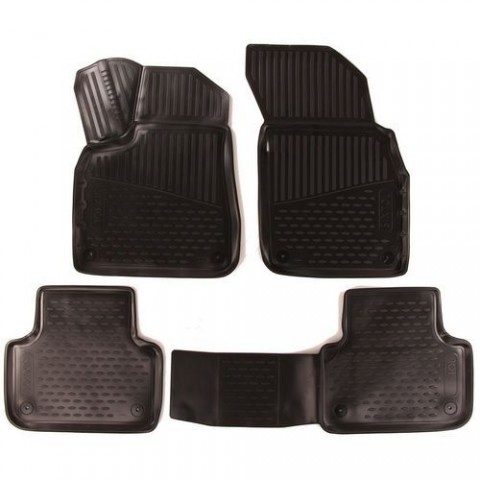 Koberce jsou vyrobeny přesně podle tvaru podlahových ploch konkrétního typu vozidla. Koberce jsou snadno omyvatelné, s rychlou možností vysypání nečistot a snadnou instalací. Vysoce odolná pryž zajišťuje kobercům vysokou pružnost, která zabezpečí při ohýbání (např. při skladování), že se koberce roztáhnou opět do původního tvaru. Výhodou těchto koberců je zvýšený okraj, chránící interiér interiéru vozidla před vysypáním sypkých materiálů či vylitím tekutin, apod. do interiéru vozidla, s odolností vůči prosáknutí olejů, benzínu a částečně také vůči elektrolytu z akumulátorů. Nepříjemnému posunu koberců po podlaze vozidla či shrnování pod pedály účinně zamezí speciální protiskluzové tvarování na spodní straně koberců, které se snadno přichytí k originálnímu čalounění podlahových prostorů.3D Gumové koberce AUDI Q8, 2018, SUV, Evropa SIXTOL