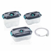 Set 3 vaukových krabiček o objemu 500 ml, 800 ml, 1400m l + vakuová hadice. Kompatibilní s vakuovačkami Leifheit. Ideální na jemné potraviny citlivé na tlak či na tekuté potaviny. Víčko krabičky s datem.4-dílná sada vakuových krabiček na čerstvé potraviny pro elektrické vakuování, 3ks