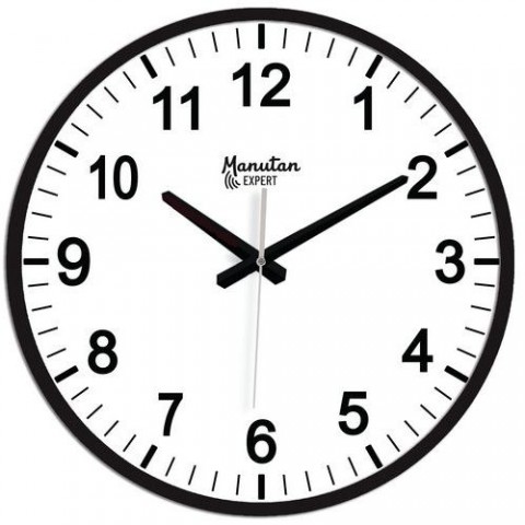 Analogové nástěnné hodiny o průměru 40 cm. Tichý strojek, dobrá čitelnost číslic. Chod hodin zajišťuje 1 tužková baterie.Analogové hodiny Manutan Expert, autonomní quartz, průměr 40 cm