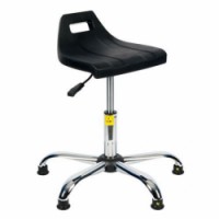 ESD otočná pracovní stolička. Nastavení výšky sedáku pomocí pneumatického pístu. Sedák z polyuretanu a podstavec z chromované oceli. Hmotnost židle je 11 kg.Antistatická ESD pracovní stolička Lenny s kluzáky