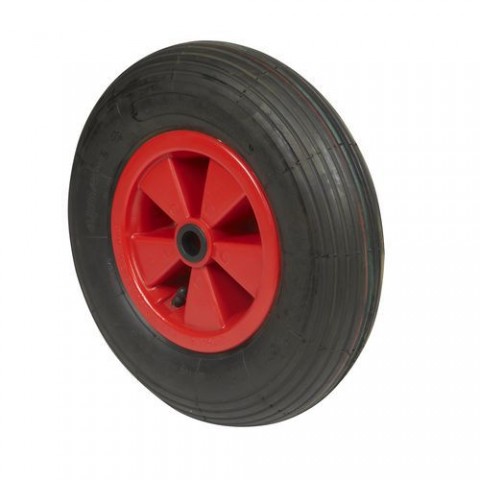Bantamová kola s černou obručí a plastovým diskem. Tichý chod a malý rozjezdový odpor. Dezén podélných drážek. materiál kol: guma průměr kola: 400 mm šířka kola: 100 mm nosnost: 200 kg způsob uchycení: bočním otvorem průměr bočního otvoru: 20 - 25 mm délka náboje: 75 mm dezén: podélné drážky ložiska: kluznáBantamová kola, průměr 400 mm, kluzná ložiska