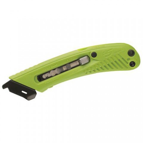 Řezák pro praváky se dvěma stupni aretace čepele, bezpečnostní špičkou, která zabraňuje pořezání a integrovaným rozřezávačem fólií. Kryt nože je ergonomicky tvarovaný.Bezpečnostní zasouvací nůž BZN1
