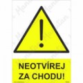 Bezpečnostní značení tabulkou, značkou nebo samolepkou "Neotvírej za chodu - žlutá verze" je tištěno na vysoce kvalitním materiálu, barvami s vysokou odolností proti otěru a UV záření. Tak, aby provedení značení bylo plně v souladu s Nařízením vlády č. 375/2017 Sb., ČSN ISO 3864 a ČSN ISO 3864-1.Výstražné tabulky - Neotvírej za chodu