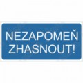 Bezpečnostní značky, tabulky nebo samolepky "Nezapomeň zhasnout!" splňují požadavky právních a technických předpisů, zejména Nařízení vlády č. 375/2017 Sb., ČSN ISO 3864-1, ČSN ISO 3864-2, ČSN ISO 3864-3, ČSN ISO 3864-4.Příkazové tabulky - Nezapomeň zhasnout
