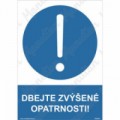 Bezpečnostní značky, tabulky nebo samolepky "Dbejte zvýšené opatrnosti" splňují požadavky právních a technických předpisů, zejména Nařízení vlády č. 375/2017 Sb., ČSN ISO 3864-1, ČSN ISO 3864-2, ČSN ISO 3864-3, ČSN ISO 3864-4.Příkazové tabulky - Dbejte zvýšené opatrnosti