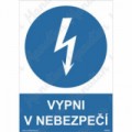 Bezpečnostní značení tabulkou, značkou nebo samolepkou "Vypni v nebezpečí" je tištěno na vysoce kvalitním materiálu, barvami s vysokou odolností proti otěru a UV záření. Provedení je plně v souladu s požadavky právních a technických předpisů, zejména Nařízení vlády č. 375/2017 Sb., ČSN ISO 3864-1, ČSN ISO 3864-2, ČSN ISO 3864-3, ČSN ISO 3864-4. Tyto tabulky musí být umístěny na dobře viditelných místech, kde je žádoucí zdůraznit nutnost splnění závažné povinnosti – vypnutí zařízení z chodu k zajištění bezpečnosti práce, technických zařízení a ochrany zdraví v případě vzniku nebezpečné situace.Příkazové tabulky - Vypni v nebezpečí