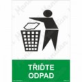 Bezpečnostní značení tabulkou, značkou nebo samolepkou "Třiďte odpad" tiskneme na vysoce kvalitním materiálu, barvami s vysokou odolností proti otěru a UV záření. Tím zajišťujeme splnění požadavků Nařízení vlády č. 375/2017 Sb., ČSN ISO 3864-1, ČSN ISO 3864-2, ČSN ISO 3864-3, ČSN ISO 3864-4.Příkazové tabulky - Třiďte odpad