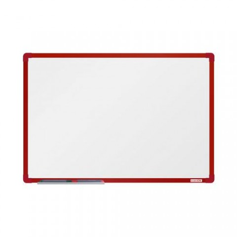 Bílá magnetická tabule s vysoce kvalitním lakovaným povrchem vhodným pro popis fixem. Lakovaný povrch doporučujeme do kanceláří a institucí, kde není vystaven tak intenzivnímu popisování. Díky sendvičové konstrukci má tabule vysokou odolnost proti kroucení. Tabule je opatřena rámem z hliníkového barevného profilu (stříbrná, červená, modrá, zelená, hnědá). Plastové rohy mají stejnou barvu jako rám. Díky tomu si můžete vybrat vzhled vhodný do jakéhokoli interiéru. Tloušťka tabule je 20 mm. Součástí balení je kompletní montážní sada pro upevnění na stěnu a polička na odkládání fixů. Montáž vertikálně i horizontálně. Tabule je dodávána v pevném kartonovém obalu s dřevěnými výztuhami pro bezpečnou přepravu. Česká výroba.Bílé magnetické tabule boardOK, 90 x 60 cm