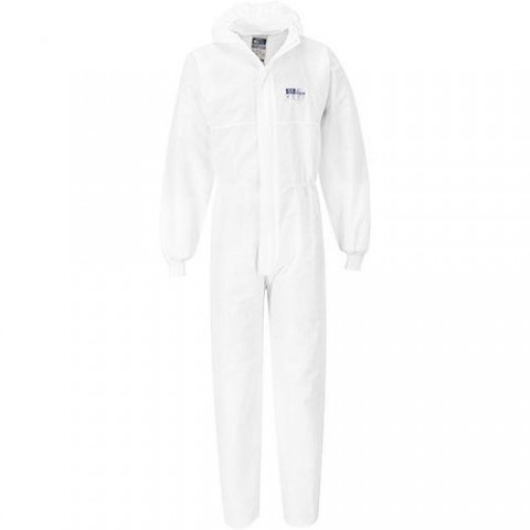 Vysoce prodyšný SMS materiál. Pletené manžety elastický pas a kotníky pro větší volnost pohybu. Antistatické vlastnosti. CE certifikace Kapuce Elastický lem Uzavíratelné krytí zipu Vnější obal CE-KAT IIIBizTex SMS kombinéza s pletenými manžetami, bílá