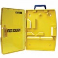 Přenosná stanice pro uložení visacích zámků a blokovacích spon. Lze uložit až 10 visacích zámků, 2 spony a 10 visaček. Vyrobená z polypropylenu, velmi lehká a nekorozivní. Možnost připevnění na stěnu díky předvrtaným otvorům. Madlo pro snadný přenos z místa na místo.Přenosná skříňka na visací zámky Brady, 10 zámků