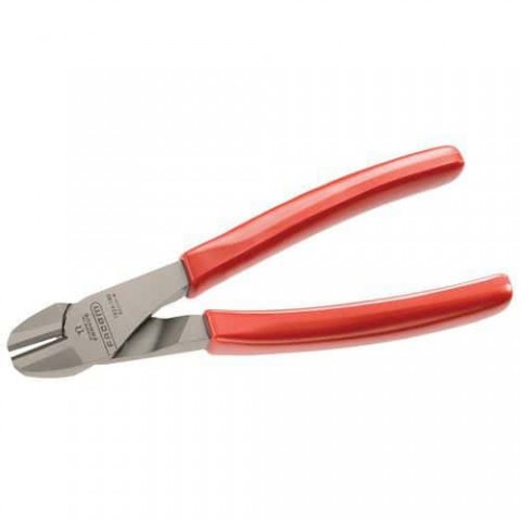 Lakované a leštěné diagonální štípací kleště s rukojetí potaženou PVC. Minimální řezná síla díky speciálnímu pákovému ramenu a posunuté ose. Čisté břity pro všechny typy drátů (klavírní drát, měkký drát, moderní materiály). Dlouhá životnost díky chrom-molivanadiové oceli (zvýšená odolnost). Ergonomické štípací kleště s rukojetí potaženou PVC pro vysokou odolnost vůči chemikáliím.Boční štípací kleště Facom