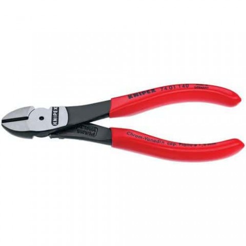 Kleště s vysokým výkonem a minimální námahou díky koordinaci úhlu ostří a převodového poměru. Indukčně kalené přesné břity pro všechny typy drátů, včetně klavírního drátu. Vysoce výkonná, kovaná a v oleji kalená chrom-vanadiová ocel.Boční št??pací kleště Knipex, 140 mm
