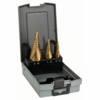 Vhodné pro téměř všechny tenké materiály, např. neželezné kovy, ocelové plechy, plasty nebo nerezovou ocel. Bez předvrtávání, bez otřepů do tenkých plechů. pro odstraňování otřepů, kruhové otvory, vrtání více průměrů jedním vrtákem, navrtávání stávajících otvorů. Spirálová drážka pro delší životnost, menší vibrace a rychlejší postup vrtání. Vyznačení průměru na obou spirálách. Stopka se 3 ploškami proti prokluzování ve sklíčidle. Dostupné ve třech provedeních:HSS = 100% životnostHSS-TiN = 125% životnostHSS-AlTiN = 150% životnost (není nutné chlazení) balení: 1 x BAL, 3ks v BAL celková délka: 66,5; 70,5; 93,5 mm výška stupně: 4; 4; 4 mmBosch - 3dílná sada stupňovitých vrtáků HSS-TiN 4-12; 4-20; 6-30 mm