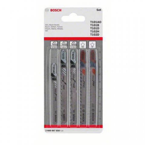 balení: 5 x BAL, 5ks v BAL obsah sady: T 101 AO Clean for Wood; T 101 B Clean for Wood; T 101 D Clean for Wood; T 102 H Clean for PVC; T 102 D Clean for PPBosch - 5dílná sada pilových plátků do kmitacích pil Wood and Plastic T, 5 BAL