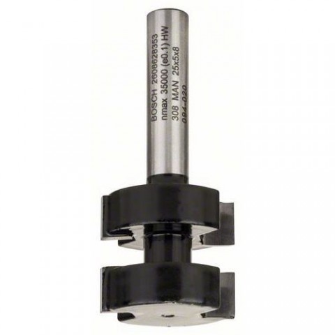 K frézování klasických profilů pero-drážka na hranách materiálů z masivního dřeva v kombinaci s kotoučovou drážkovací frézou pracovní délky 5 mm. Hodí se na masivní dřevo balení: 1 x BAL, 1ks v BAL o: 25 mm celková délka: 58 mm délka: 5 mm o stopky: 8 mmBosch - Fréza na pero 8 mm, D1 25 mm, L 5 mm, G 58 mm