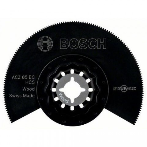 Hodí se pro veškeré nářadí Starlock (Bosch: GOP 12V-28 Professional; PMF 220 CE; PMF 250 CES), StarlockPlus (Bosch: GOP 30-28; GOP 40-30; GOP 18V-28 Professional; PMF 350 CES - Fein: AFMT 12 SL; AFMT 12 QSL; AFMM 18 QSL; FMT 250 SL; FMT 250 QSL; FMM 350 QSL) a StarlockMax (Bosch: GOP 55-36 Professional - Fein: AFSC 18 QSL; AFSC 18 QCSL; FSC 500 QSL). Nářadí Bosch OIS GOP a PMF; Fein Multimaster a Multitalent; AEG; Einhell; Hitachi; Makita; Metabo; Milwaukee; Ryobi; Skil atd. ACZ 85 EC. HCS segmentový pilový kotouč Starlock Wood, profilovaný. Ponorný řez do masivního dřeva, např.?při montáži větracích mřížek. Zarovnání dřeva (např.?vyčnívající čep dřevěného spoje). Zkracování plastových trubek (PVC) balení: 1 x BAL, 10ks v BAL; 1 x BAL, 1ks v BAL materiál: HCSBosch - HCS segmentové pilové kotouče Starlock ACZ 85 EC Wood