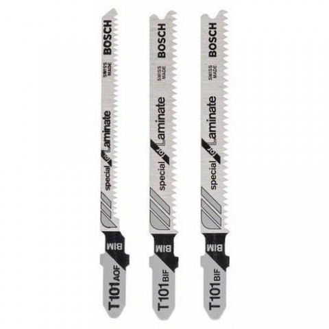 balení: 5 x BAL, 3ks v BAL obsah sady: T 101 BIF Special for Laminate; T 101 AOF Special for LaminateBosch - Sada pilových plátků do kmitacích pil, 3dílná T 101 BIF (2x); T 101 AOF, 5 BAL