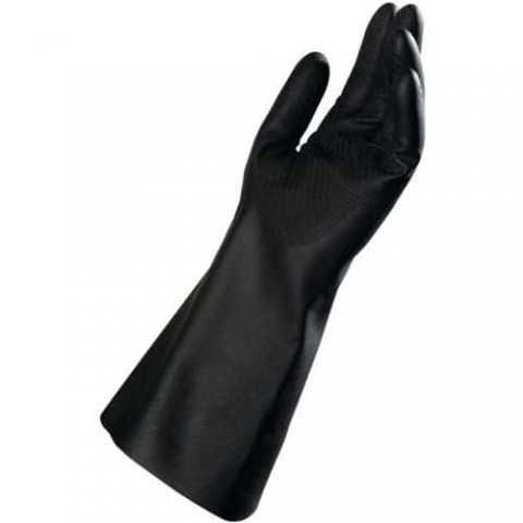 Bezkonkurenční flexibilita a obratnost. Butylové rukavice s textilní vložkou. Velmi vysoká odolnost vůči chemikáliím, zejména vůči velmi agresivním kyselinám, ketonům, esterům a aminovým derivátům. Protiskluzová vnější úprava.Chemické rukavice Mapa Professional Butoflex 650, černá