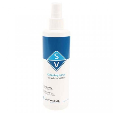 Čisticí sprej na bílé popisovatelné tabule. Vhodný pro pravidelné a důkladné čištění.Čisticí sprej na bílé tabule Smit Visual, 250 ml