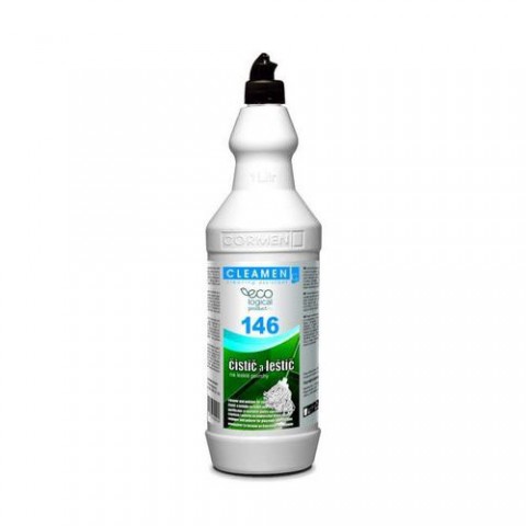 Prostředek v jednom kroku dosahuje maximálního lesku beze šmouh. Obsahuje velmi jemné a neutrální tenzidy, které účinně odstraní i odolné nečistoty. Je zejména určen na povrchy náchylné k poškození a zmatovatění jako jsou leštěné mramory, žuly a přírodní i umělé kameny, vysoce lesklé dlažby. Je vhodný i na plasty, laminátové povrchy, leštěný nerez i jiné kovy. Prostředek je určen pro ruční mytí mopem nebo mikrovláknovou utěrkou, pro dosažení plného efektu lesku. Vhodný do provozoven s biologickou čistírnou odpadních vod. Nevhodný pro strojní mytí.Cleamen 146 čistič a leštič na lesklé povrchy 1l