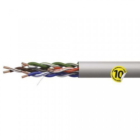 Nestíněný horizontální kabel nejvyšší kvality kategorie CAT5E s PVC pláštěm. Jádra vodičů vyrobeny z nerecyklované mědi. Kabel splňuje požadavky směrnice CPR o stavebních výrobcích. tloušťka pláště: 1,1 mm barva pláště: šedá (RAL 7035) maximální provozní vlhkost: 93 % tloušťka izolace vodičů: 0,22 mm montážní teplota: +5 °C až +60 °C tahový prvek: Nylon 150D izolace vodičů: HDPE průměr vnitřního vodiče: 0,48 mm průměr kabelu: 5,2 mm značení kabelu: UTP Cat5E PVC 1 – 305 m produkt: UTP kabel bez konektorů nejvyšší podporovaný protokol: 1000 Base-T (Gigabit Ethernet) délka: 305 m typ: UTP CAT 5E záruční doba: až 10 let plášť kabelu: PVC skladovací teplota: -20 °C až +60 °C konstrukce kabelu: drát kategorie: 5E materiál vnitřního vodiče: měď (Cu) prodejní obal: 305 m, papírová krabice AWG: 24 třída reakce na oheň: Eca nebezpečné látky: žádnéDatový kabel UTP CAT 5E, 305m