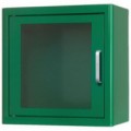 Nástěnná skříňka pro defibrilátor se zvukovou signalizací do vnitřních prostor. Ocelová skříňka RAL 6024 s velkým skleněným oknem.Nástěnná skříňka AED pro defibrilátor