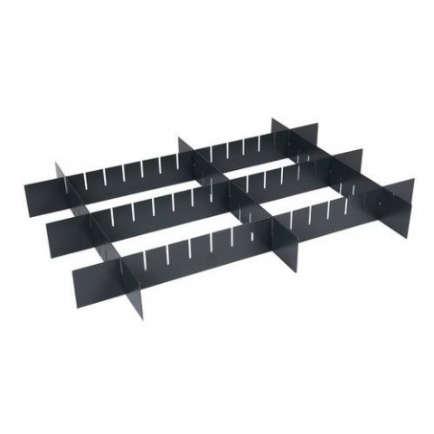 Sada 6 ks dělících příček k organizaci místa v zásuvkách montážního vozíku Classic. Příčky je možné vložit do všech zásuvek vozíku. Povrchová úprava práškovým lakem v barvě RAL 7016. Délka kratších příček 407 mm. Vhodné pro montážní vozík Classic.Dělicí příčky do zásuvky Classic, 6 ks