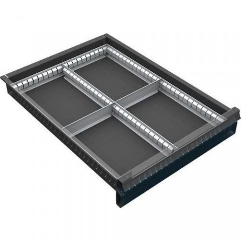 Dělicí příčky pro zásuvkové skříně umožňují rozdělení zásuvek na přihrádky. Vhodné pro zásuvky o výšce 60, 90 nebo 120 mm. Sada obsahuje jednu příčnou a jednu podélnou příčku. Příčky jsou dodávány ve stříbrné barvě. materiál: kov typ: 2 x příčná/podélná rozměry v x š x h: 4,7 x 39,5 x 55,8 cm barva: stříbrnáDělicí příčky