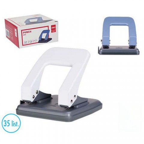 Vysoce kvalitní, celokovová, kancelářská děrovačka s barevnými plastovými doplňky. Protiskluzové plastové dno proti poškození nábytku. Pohodlné vyprazdňování odřezků, dno se pouze odklopí.Děrovačka DELI do 35 listů, bílá