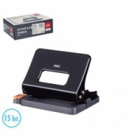 Kancelářská děrovačka celokovová s příložníkem ušetří až 40% síly. Protiskluzové plastové dno proti poškození nábytku, bezpečnostní zámek s funkcí uzavírání. Pohodlné vyprazdňování odřezků, dno se pouze odklopí.Děrovačky DELI do 15 listů