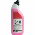 CLEAMEN 310 na toalety 1l, hygienický antibakteriální prostředek. Koncentrovaný hygienický přípravek určený k přímému použití na odstraňování vodního kamene a močových i hořečnatých úsad - rzi z toaletních mís, pisoárů, bidetů, baterií, umyvadel, sifonů atd. Dezinfekční přísada zajišťuje potlačení výskytu bakterií. Nepoužívat na materiály neodolné kyselinám a k jiným než doporučeným účelům.Cleamen 310 na WC a keramiku 750 ml, antibakteriální