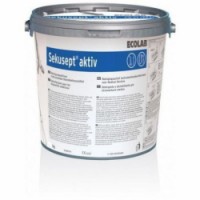 Vysoce účinný čistící a dezinfekční přípravek pro nástrojovou dezinfekci včetně endoskopů a dezinfekci a čištění ploch a povrchů včetně koupacích van. Nová receptura - výrazný a rychlý účinek, neobsahuje aldehydy, pro manuálně prováděnou dezinfekci, ultrazvukové lázně, mycí poloautomaty, vynikající materiálová snášenlivost - pH pracovního roztoku 8, zcela rozpustný, bez zbytkových reziduí, možnost kontroly koncentrace účinné látky (testovací proužky), bezpečný a ekologický. Spektrum účinnosti: baktericidní (vč. TBC), virucidní (vč. HBV, HIV, Vaccinia, Adeno, Papova, Polio), fungicidní, sporicidní Složení: tetraacetylethylendiamin, peroxouhličitan sodný, neionogenní tenzidy, inhibitory koroze, komplexotvorné látky, parfemační přísady. Oblast použití: Pro aktivní čištění a dezinfekci zdravotnického instrumentária včetně endoskopů, anesteziologického příslušenství apod., ve všech typech zdravotnických zařízení, laboratořích, farmaceutické výrobě atd.Dezinfekční přípravek Sekusept Aktiv 1,5kg dóza pro nástrojovou dezinfekci