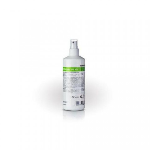 CITROclorex 2% MD je registrován jako zdravotnický prostředek. Široké spektrum účinnosti , okamžité a dlouhotrvající působení , snadné a rychlé použití Obsah účinných látek ve 100 g produktu: 2 g Chlorhexidine digluconate 62 g Isopropyl Alcohol Pomocné látky, purifikovaná voda. Přípravek je určen výhradně pro profesionální použití. Aplikujte přípravek přímo, neředí se. Je určen pro péči o povrch zdravotnických prostředků. Je-li to nutné, lze jej také nanést na jednorázový sterilní tampon a s jeho pomocí důkladně otřít konkrétní plochu lékařského předmětu. Dezinfekci nechejte zaschnout a neoplachujte. Dvouprocentní roztok chlorhexidinu diglukonátu je přípravek určený k okamžitému použití, který se neředí, a doporučuje se zejména ve spojení s aplikací centrálního žilního katetru, periferního katetru, při zavádění kanyl, sond, spojek, portů, aj.Dezinfekční zdravotnický přípravek CITROclorex 2% MD 250ml