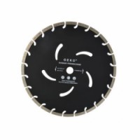 Kvalitní diamantový segmentový řezný kotouč GEKO s rozměry 350 x 10 x 25,4 mm vhodný pro hluboké řezání tvrdých stavebních materiálů za mokra i za sucha. S přerušovaným diamantovým segmentem po celém obvodu (s drážkami, výřezy), který je rozdělený na určitý počet užších segmentů. Tyto výřezy kotouč během řezání chladí a vynáší obroušený materiál z řezu ven. Segmentový kotouč se hodí pro hluboké řezání tvrdých stavebních materiálů jako je např. beton, železobeton, asfalt, zdivo, kámen apod., vytváří širší řez a může štípat okraje.Diamantový řezný kotouč, segmentový, 350x10x25,4mm GEKO