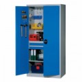 Svařované dílenské kovové skříně se dvěma policemi vhodné do výrobních prostor, autoservisů nebo laboratoří. Vnitřní stěny a dveře s perforací pro umístění držáků na nářadí. Police lze přestavit v rastru 25 mm. Vnitřní panty s úhlem otevření 110°. Vyrobeny z plechu tl. 0,7 mm. Dno korpusu je vyztužené kovovými patkami. Dvoubodové uzamykání dveří v horní a spodní části skříně pomocí cylindrického rozvorového zámku (možnost dodání hlavního univerzálního klíče).Kovové dílenské skříně na nářadí, 2 police, 195 x 50,5 x 50 cm