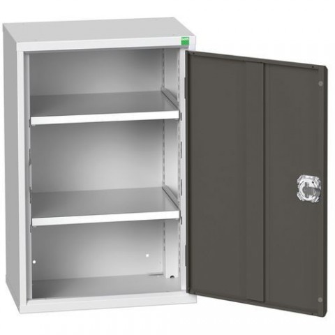 Kovové dílenské skříně s policemi pro efektivní využití v provozech a dílnách. Pozinkované police výškově nastavitelné v rastru 25 mm. Zásuvky uloženy na válečkových ložiskách se 100% výsuvem. Svařovaná ocelová konstrukce, povrchová úprava práškovým lakem. Vyztužené křídlové dveře s tříbodovým cylindrickým rozvorovým zámkem se dvěma klíči.Dílenské skříně policové jednodvéřové Bott Verso, výška 80 cm
