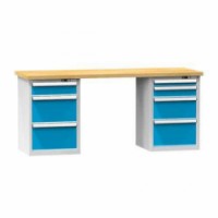 Pracovní stoly KOMBI jsou nejžádanější sestavy stolů kombinovaných ze stavebnicových nábytkových dílů. Pracovní stoly nabízíme v předdefinovaních sestavách pro každý typ v několika šířkách i hloubkách. KOMBI stoly se sestavují z pracovní desky, nohy pracovního stolu (nabízíme několik variant) nebo zásuvkové skříně, které mohou být na obou stranách stolu. Nohy je možné opatřit kolečky nebo elektro vybavením. Pracovní prostor mnohonásobně rozšíříte díky nástavbě pracovního stolu a širokému příslušenství.Dílenské stoly KOMBI NB4720, 2000 x 700 x 880 mm, BUK