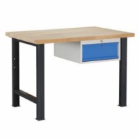 Dílenský stůl Weld ve dvou barevných variantách složený z pracovní desky, pevného podnoží a zásuvky. Stůl je stabilní a vyhovuje i náročnějším pracovním úkolům díky robustnímu provedení podnoží a vyšší váze bukové spárovky. Pracovní deska 120 x 80 cm z bukové spárovky tl. 4 cm, sražené hrany, bez povrchové úpravy. Maximální nosnost pracovní desky při rovnoměrném zatížení 500 kg. Svařovaná zásuvka v x š x h: 18 x 51 x 59 cm, výsuv 100%, kuličková ložiska pojezdů. Zásuvka uzamykatelná cylindrickým zámkem se dvěma klíči. Pevné podnoží z ocelového U - profilu 50 x 70 cm, tl. 3mm a ocelových plechů tl. 0,8 mm. Otvory v pracovní desce pro montáž podnoží nebo skříněk nutno předvrtat vrtákem pr. 4 - 4,5 mm (pro vrtání zvolte taková místa, kde se vyhnete spojům jednotlivých lamel stolu). Desku doporučujeme impregnovat speciálním olejem, především pokud je stůl umístěn ve vlhkém prostředí. Povrchová úprava kovových částí práškovým lakem.Dílenské stoly Weld, 84 x 120 x 80 cm
