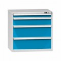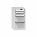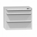 Zásuvkové skříně ZG s výškou 840 mm a třemi zásuvkami. Korpus je vyroben z kvalitních ocelových plechů. Zásuvková skříň je opatřená mechanismem centrálního zamykání a blokace zásuvek. Standardně jsou zásuvkové skříně osazeny cylindrickými zámky, ke každému zámku jsou dodávány dva klíče. K dostání ve 3 barevných variantách.Dílenské zásuvkové skříně ZG, 3 zásuvky, 840 x 1037 x 753 mm, šedá